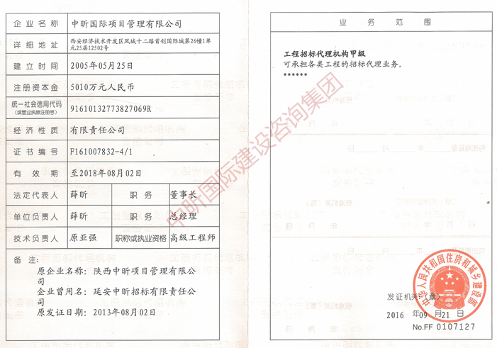 工程招标代理机构甲级